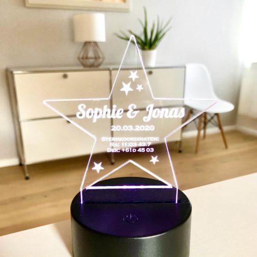 Verschenken Sie neben Ihrer Sterntaufe einen „greifbaren“ Stern aus edlem Mangoholz, in den die persönlichen Sterndaten Ihrer Sterntaufe eingraviert werden. Neben der Sternurkunde erhält der Beschenkte mit dem Mangoholz-Stern ein dekoratives Wohnaccessoire, mit dem er seinen Stern auch sehen kann, falls die Wettervehältnisse den Blick auf den echten Stern einmal nicht zulassen.