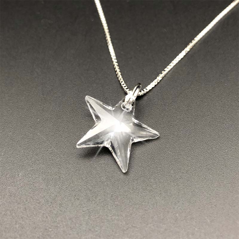 Der Stern-Anhänger an der Kette ist aus Markenkristall (Durchmesser: 20mm) von höchster Qualität, der selber mindestens so hell funkelt, wie ein echter Stern am Himmel. Die feinen Formen und das facettenreiche Farbspiel dieses edlen Schmuckstücks werden Sie begeistern.