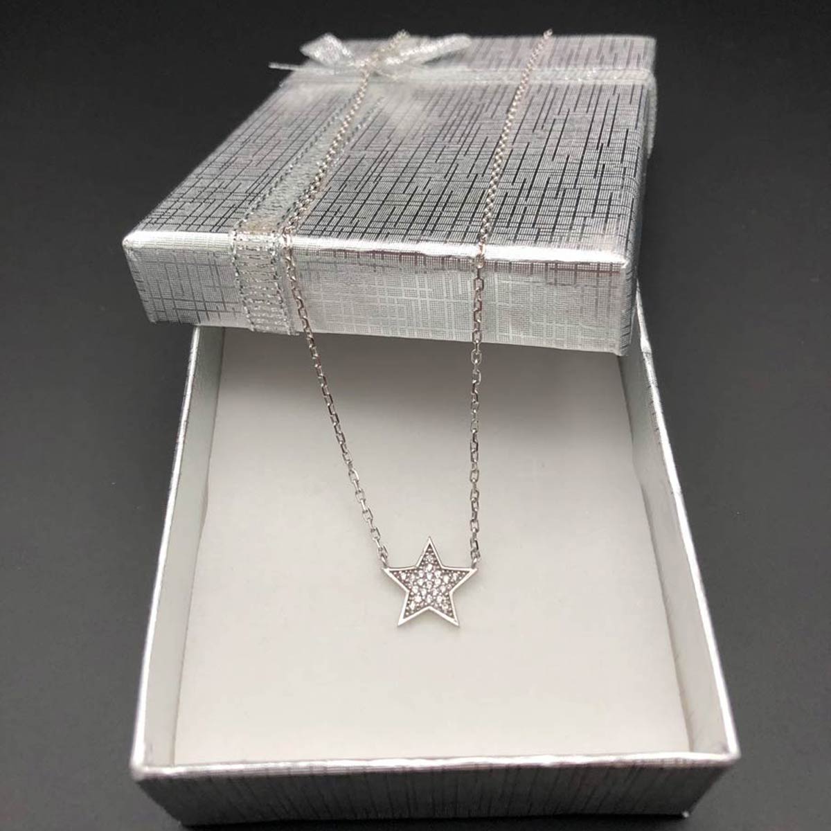 Edles Stern-Collier aus 925 Silber, besetzt mit 18 Zirkonia Steinen
